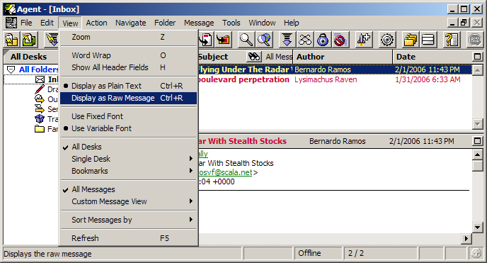 Headers are the e-mail addresses of the senders or recipients, date/time of the e-mails, subjects, etc.  You can use headers to decipher who is really sending you e-mails.  If you receive spam, you can locate the headers of the message and send them to your Internet service provider.  They can then contact or black list the ISP from which the e-mails originated.  The following tutorial explains how to locate all the message headers.  To get all the headers, you need to do the following: