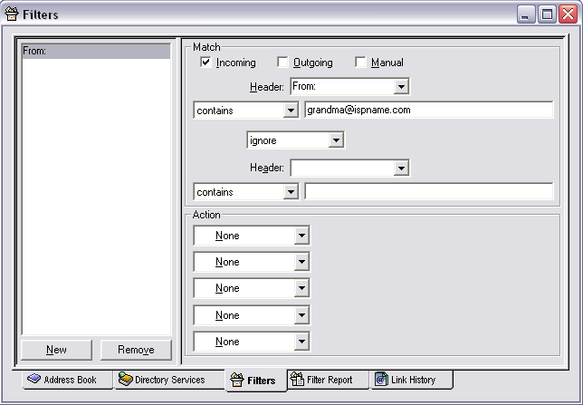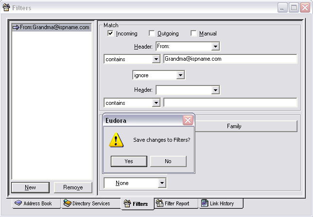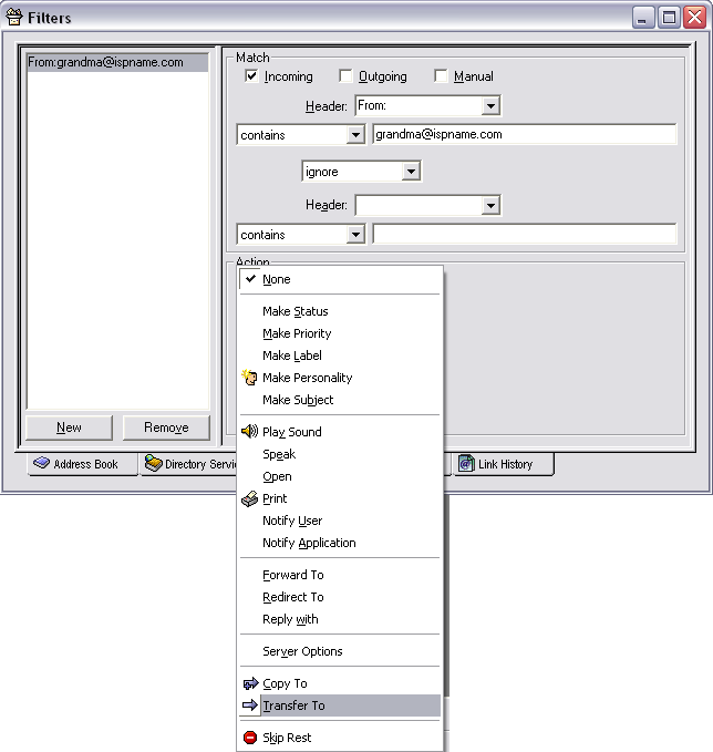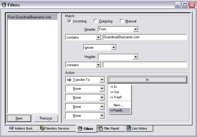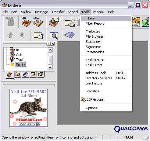 In this example we'll create a filter that will allow Eudora to send e-mail to a specified folder automatically.