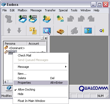 Then right-click an account in the personalities pane and select Properties from the menu.