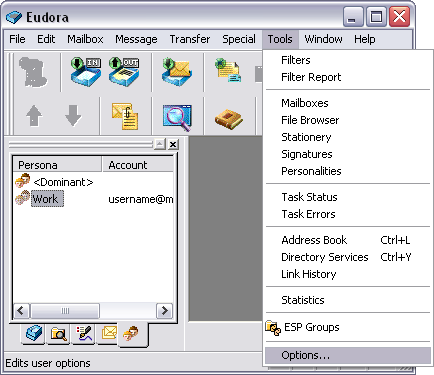 In Eudora, e-mail accounts are referred to as personalities, and editing them is just like creating them.