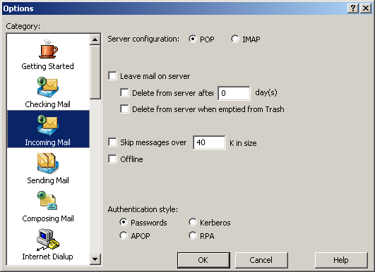 In the left-hand column, highlight Checking Mail.