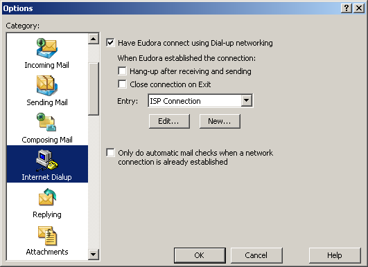 You can also enable Eudora to connect to the Internet using the connection you specify.
