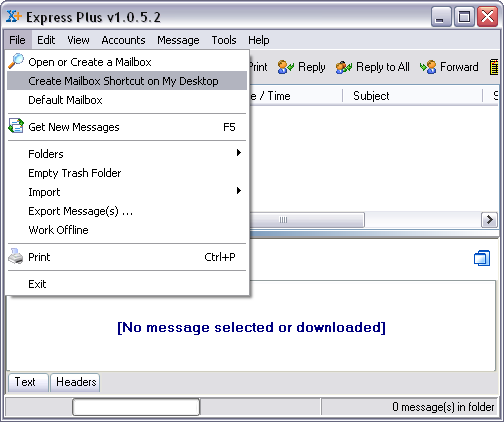On the Toolbar, click File and select Create Mailbox Shortcut on My Desktop from the menu.
