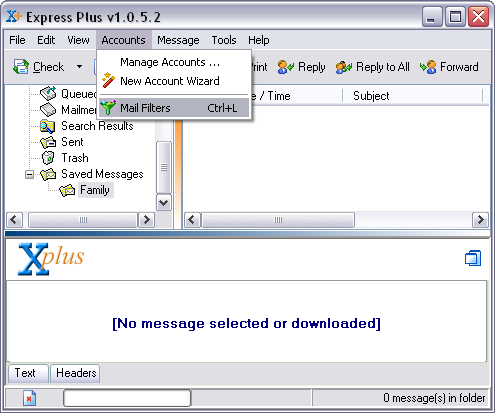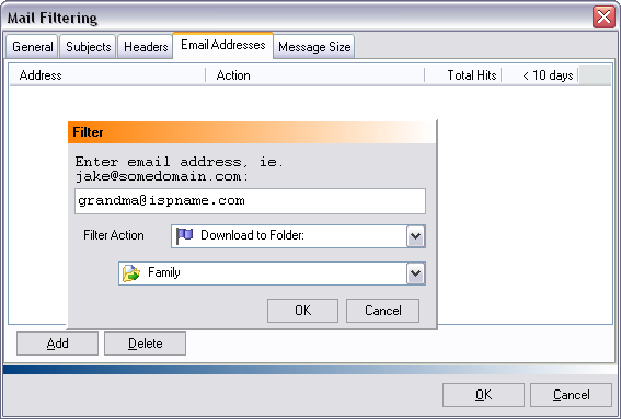 Now Express Plus will place any e-mails that come from 'grandma@ispname.com' into the 'Family' folder.