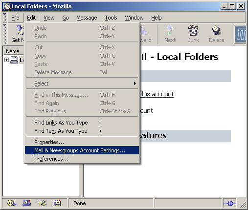 On the Toolbar, click Edit and select Mail & Newsgroups Account Settings from the menu.