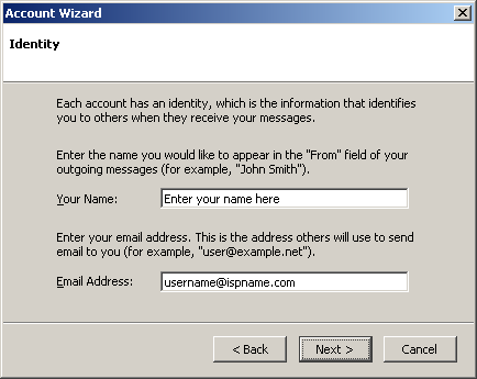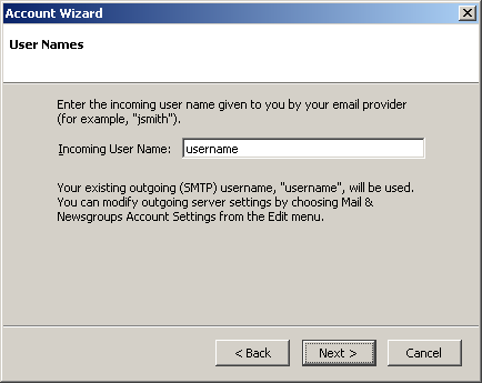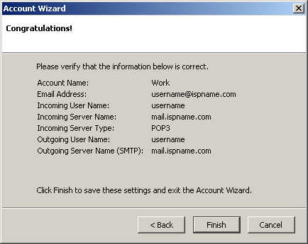 Incoming server = The Incoming (POP3) mail server usually follows this format: mail.ispname.com (or .net). Replace the "ispname.com (or .net)" with your ISP's name.