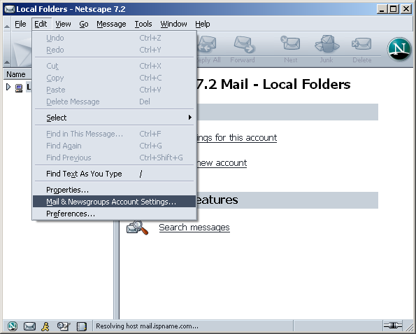 On the Netscape Mail Toolbar, click Edit and select Mail & Newsgroups Accounts Settings from the menu.
