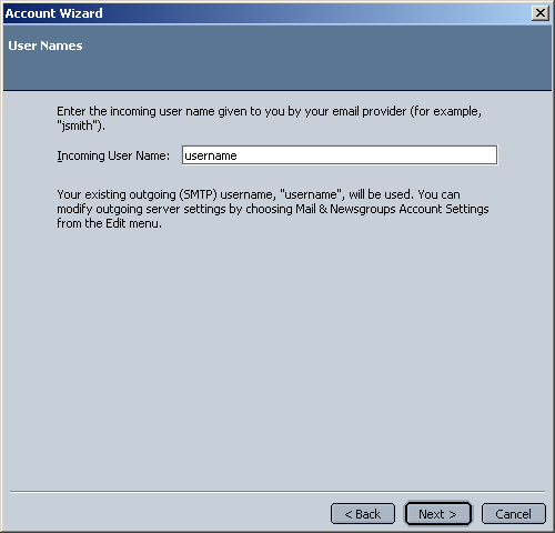 Incoming User Name = Enter your e-mail username (everything before the @).