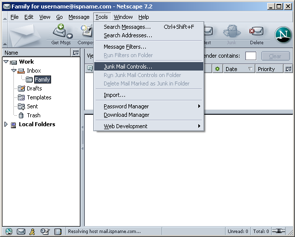 The latest version of Netscape Mail comes with built-in junk e-mail filters. Junk e-mail filters are a series of rules that detect whether an e-mail is spam or not. When enabled, these junk mail controls, along with any other filters you create, can reduce dramatically the amount of spam you have to endure. The following tutorial explains how to enable these controls.