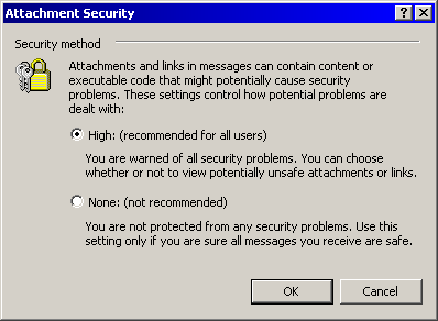 Security Tab: Enabling/disabling potentially unsafe attachments: