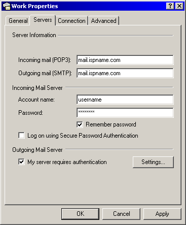 Incoming mail (POP3) = The Incoming (POP3) mail server usually follows this format: mail.ispname.com (or .net). Replace the "ispname.com (or .net)" with your ISP's name.