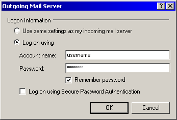 To enable SMTP authentication, place a check next to My server requires authentication.