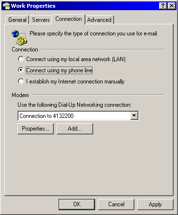 The e-mail account is now in Outlook Services. To modify the account, highlight it and select Properties.