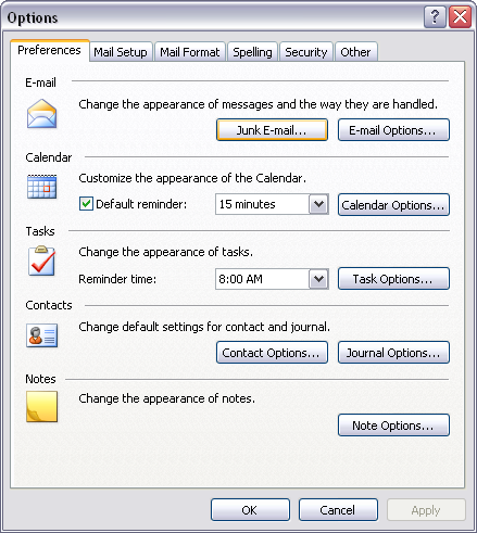 On the Preferences tab there are several sections. We'll focus on the E-mail section.