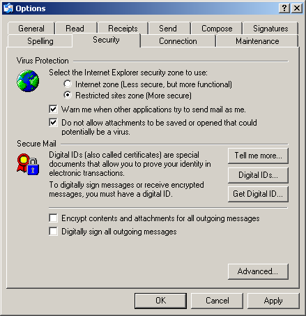 3. Attachments and viruses (click here) For Outlook Express 6 only.