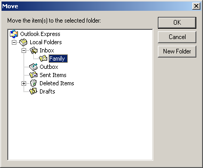 Select the folder in which you'd like Outlook to place the e-mails.  In this example, I selected the folder we created in the 'Folders' tutorial:  'Family'.