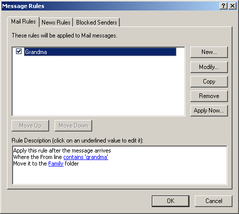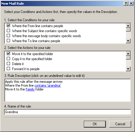 In the fourth field, give the rule a name.  In this example, I gave the rule the name 'Grandma'.
