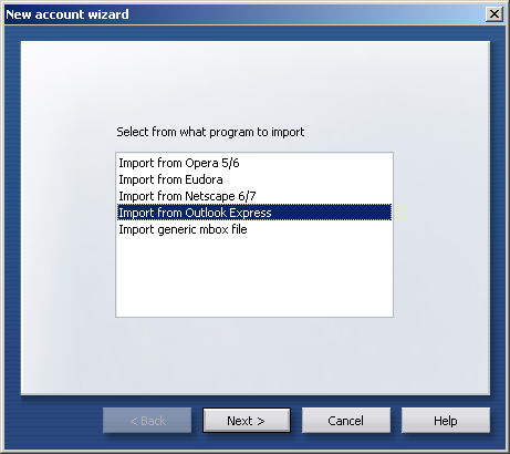 Select from what program to import = highlight the e-mail client from which you'd like to import your messages or settings.