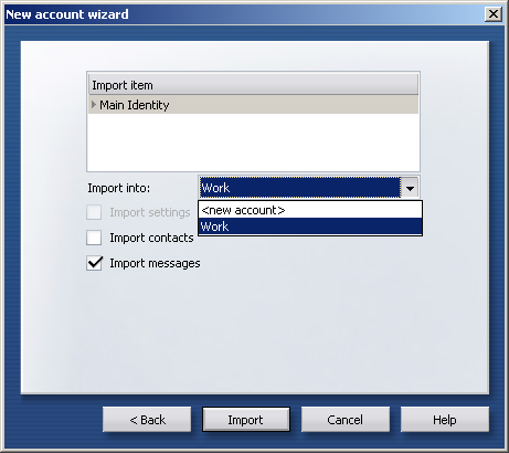 Note: if you want to import settings, you'll need to select <new account> from the Import into drop-down menu.