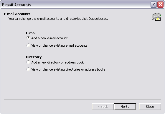 We return to the E-mail Accounts window.