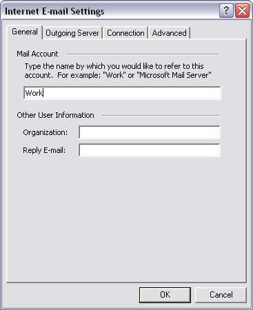 Mail Account  =  Give the mail account a name.  If you plan on making more than one e-mail account, be distinctive.