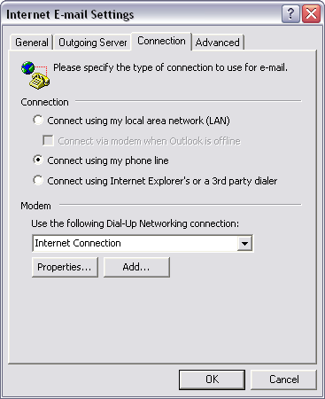 Enabling Outlook XP to connect to the Internet: