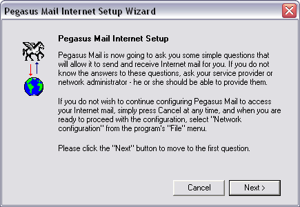 You can choose to have Pegasus dial up to the Internet to send/receive e-mail through your Internet connection.