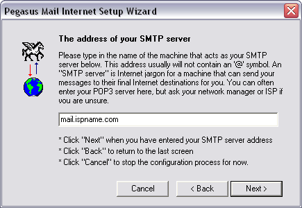 The address of your SMTP server  =  The Outgoing (SMTP) mail server usually follows this format: mail.ispname.com (or .net).  Replace the "ispname.com (or .net)" with your ISP's name.
