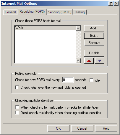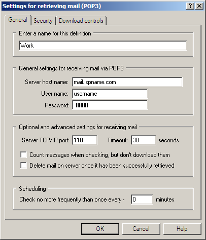 General settings for retrieving mail via POP3: