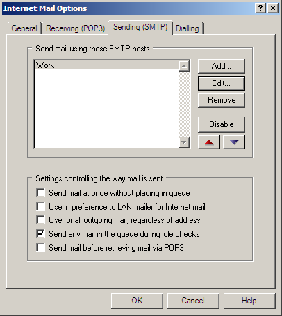 The Settings for sending mail (SMTP) screen appears.