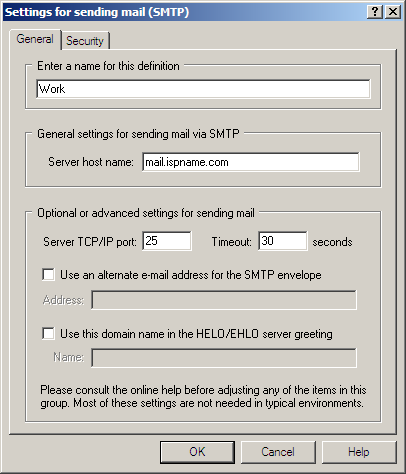 General settings for sending mail via SMTP: