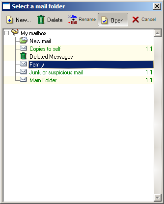 Highlight the folder to which you'd like Pegasus to move your e-mail and click the Open button.