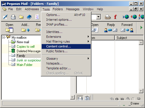 receive. By default, Pegasus moves the junk e-mail to the Junk or suspicious mail folder. However, you can specify