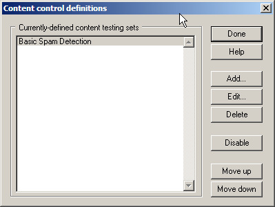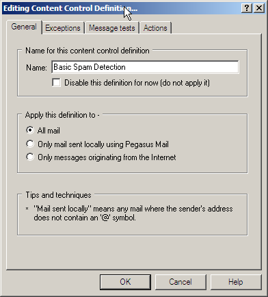 Name = By default, this is set to the only control definition Pegasus has: Basic Spam Detection.