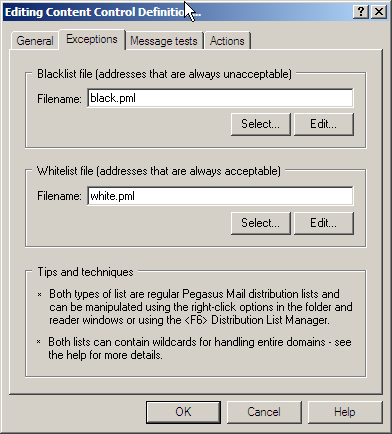 A blacklist is a register of addresses and/or domains whose e-mail you consider to be unacceptable.