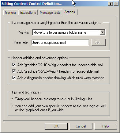The latest version of Pegasus comes with built-in junk e-mail filters. Junk e-mail filters are a series of rules that detect whether an e-mail is spam or not. When enabled, these junk mail controls, along with any other filters you create, dramatically reduce the amount of spam you have to endure. Pegasus scans each incoming e-mail against the spam detection rules and assigns a number weight to each e-mail received. If the number weight exceeds the number required to activate the spam filter (50), Pegasus moves the message to the Junk or suspicious mail folder. To catch suspicious mail, you'll need to enable the junk filtering first.