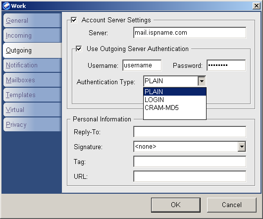 Note: If PLAIN does not work, select LOGIN from the menu.
