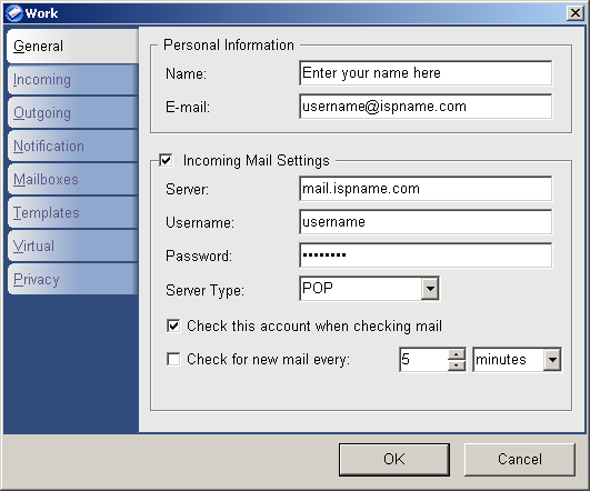 Server = The Outgoing (SMTP) mail server usually follows this format: mail.ispname.com (or .net). Replace the "ispname.com (or .net)" with your ISP's name.