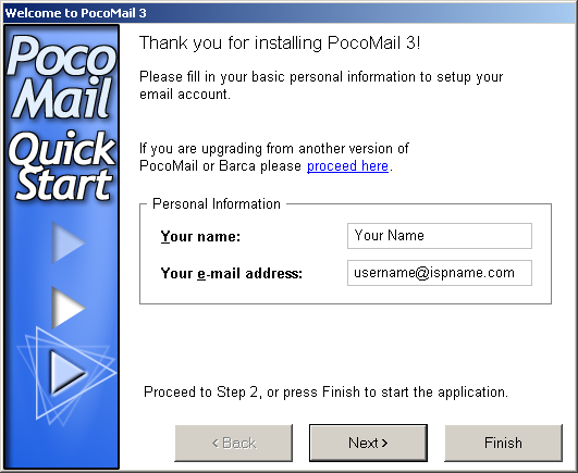 If you'd like to Import any data from previous e-mail clients select the appropriate options.