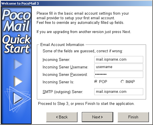 The Incoming (POP3) mail server usually follows this format: mail.ispname.com