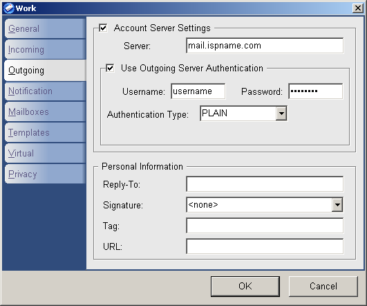 The Outgoing (SMTP) mail server usually follows this format: mail.ispname.com