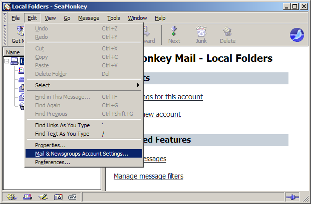 On the Toolbar, click Edit and select Mail & Newsgroups Account Settings from the menu.