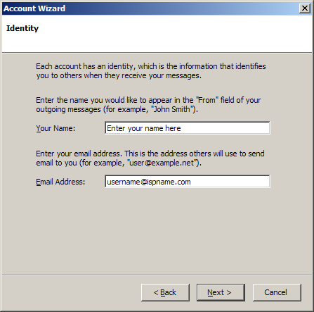 Incoming server = The Incoming (POP3) mail server usually follows this format: mail.ispname.com (or .net). Replace the "ispname.com (or .net)" with your ISP's name.