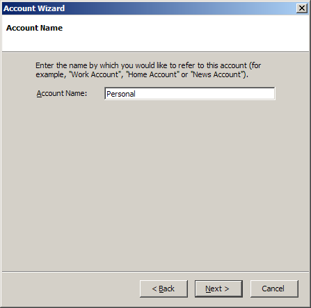 Account Name = Enter a name for the account. It can be anything you wish. Make it distinctive to help distinguish it from any other accounts you may create.