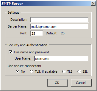Outgoing Server (SMTP) settings: