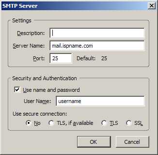 Outgoing Server (SMTP) Settings: