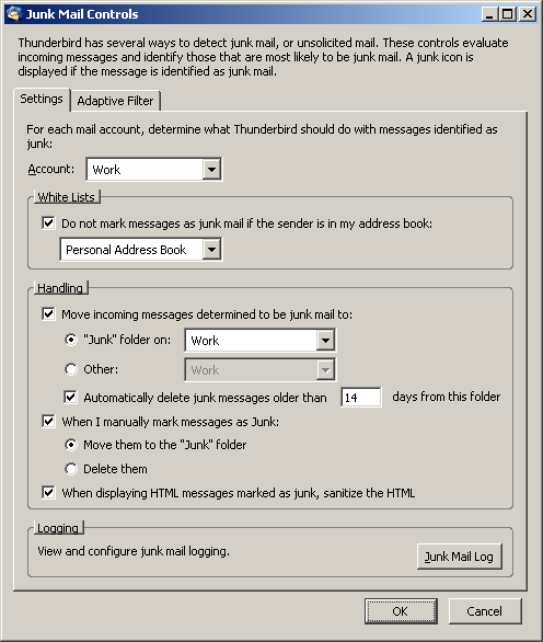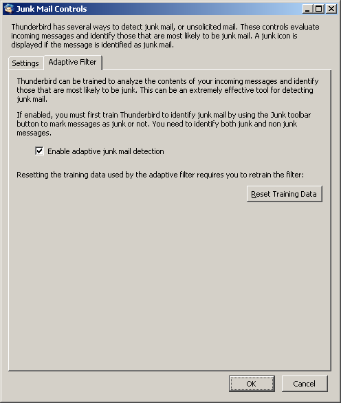 Enabling/Disabling Thunderbird's junk e-mail filter: